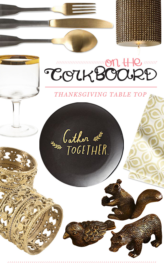 since i’m headed back to my parents for the holiday weekend, buying plates for a dinner of 15+ people is just not happening. what is happening however, is this little post i’ve compiled for a metallic mix on your thanksgiving table top.