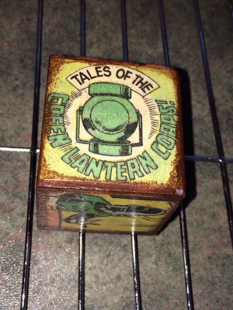 my dad rounded up some scrap wood and cut us some 2-inch blocks we used as a base. we then used mod podge to glue on the paper we cut out. to finish them off, we brushed on some acrylic paint around the edges to give the blocks a vintage look. take a look.