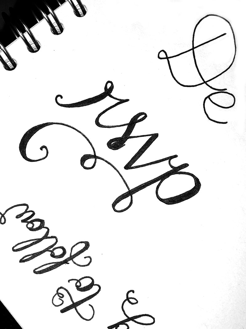 step 1 was hand-lettering, and lots of it. i always start my sketching with a black ink pen in my sketchbook, then photograph the sketch with my iPhone, send it to myself and photoshop the sketch. once i clean it up to my liking, i take it in to illustrator and make it a vector image so it’s scaleable. from here, it’s time to play with colour, layout and adding actual fonts to get the design down.