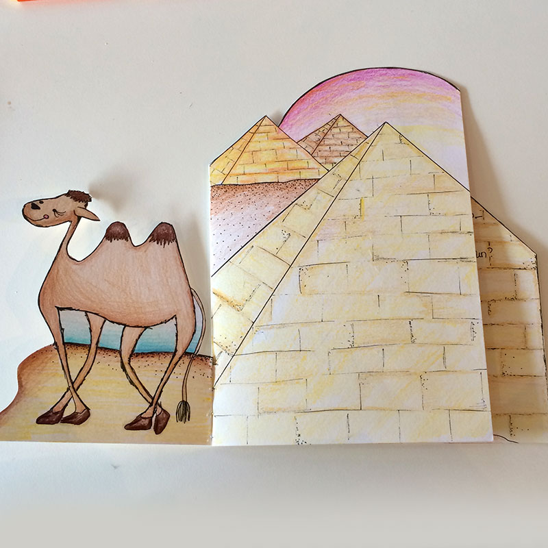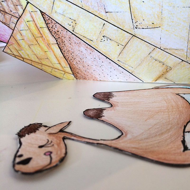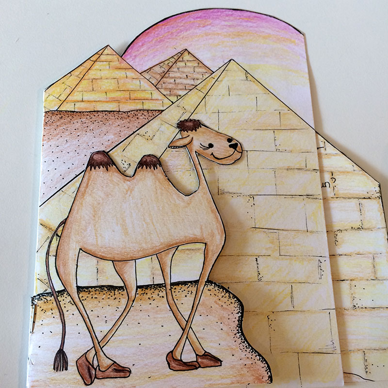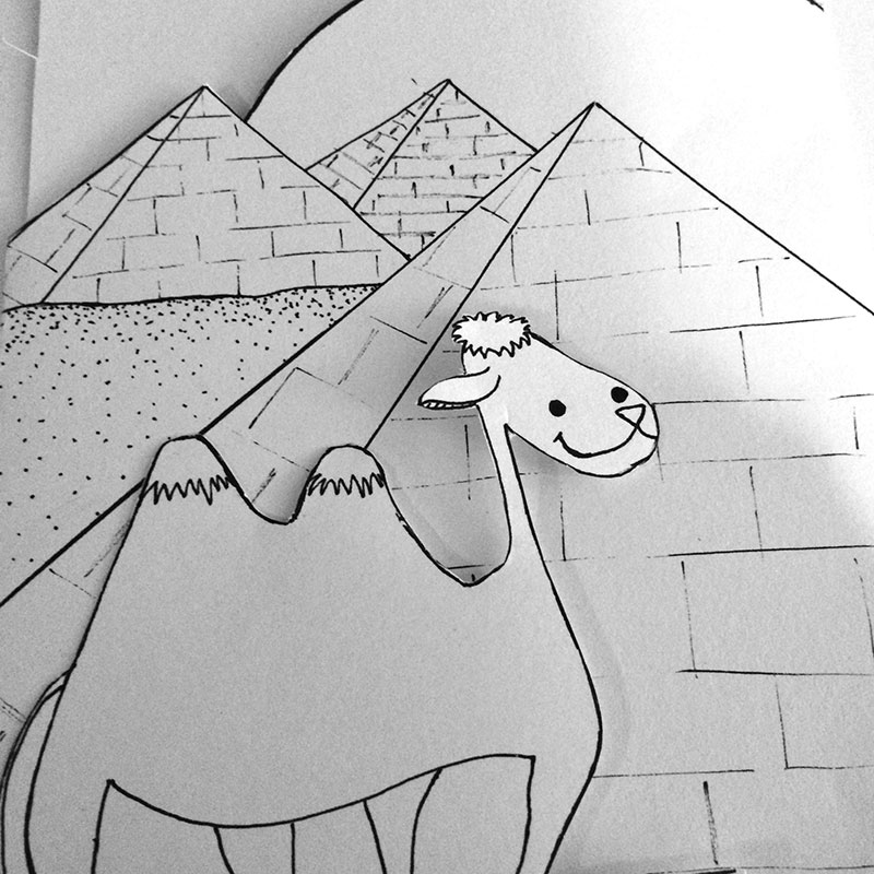 as plain as deserts are, this was quite the challenge for me. as you’ll see below, drawing camels isn’t really my thing. i used 2 sheets of cardstock from michaels, my favourite black ink pens from dollarama, and plenty of pencil crayons. i started off with getting the basic shapes down and slowly filling them in with colour and some extra detail.