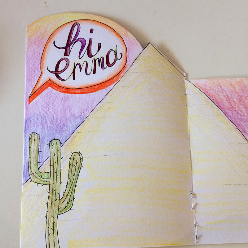 once the pieces were done, i stapled them together, licked the envelope shut and sealed it with a stamp. now i’m waiting to get some snail mail back from emma.