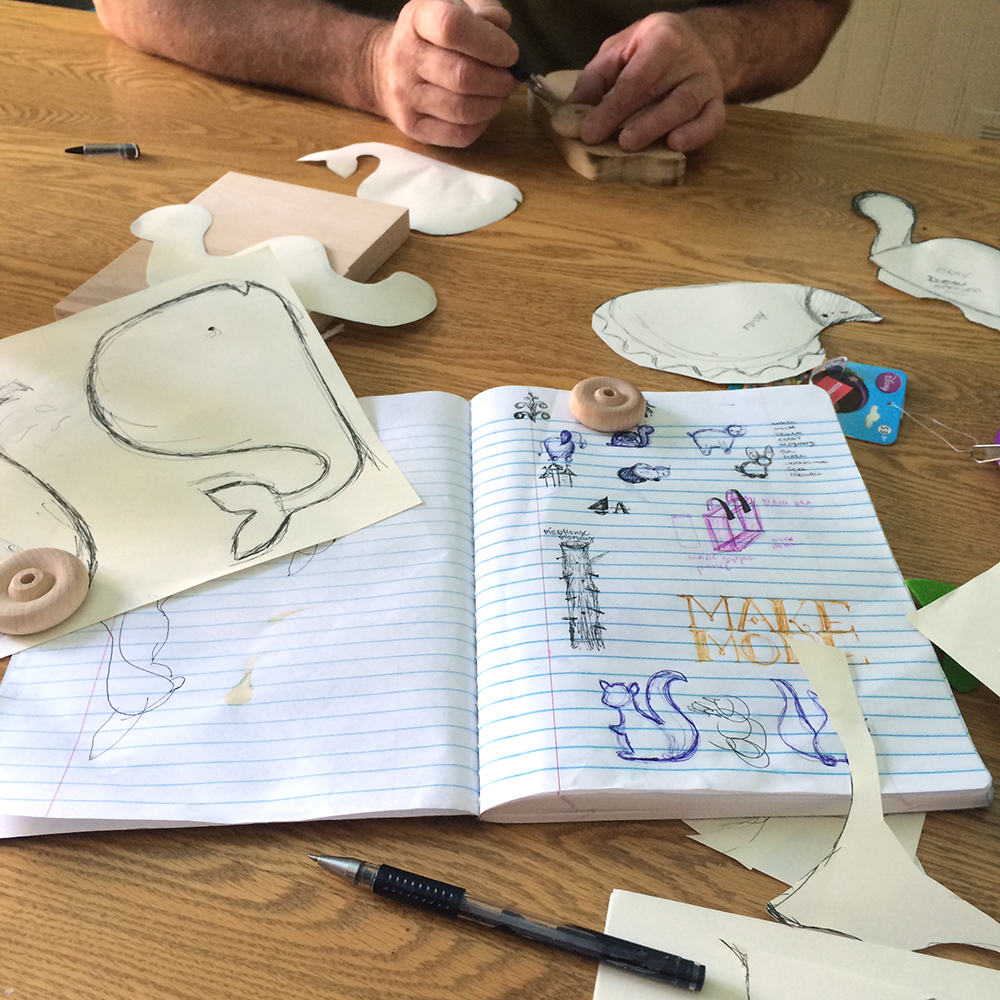 for the past couple of weeks, i have been working on some animal illustrations for my dad to turn into toys on wheels. it started out with many doodles and sketches, until we finally got one that my mom & dad approved. once we had the shape nailed down, my dad cut the shapes out of wood, then hand-sanded and stained them with kid-safe stain.